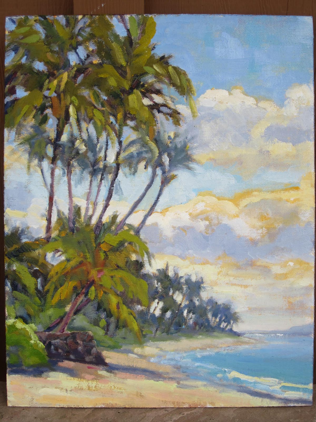 Lahaina Beach life, People love this spot to watch surfers learn! My workshop with Ken Auster was great. I usually don't put people in my paintings. I learned how!!! Other fab artists painted here as well, At the Sunset paint out, Darrell Hill, Ken Auster, Debra Huse, Ray Roberts and Peggi Kroll , Billyo. to name a few.